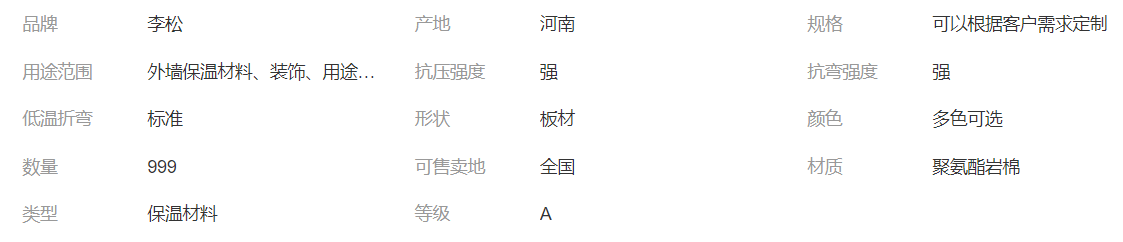 聚氨酯巖棉板厚度: 50mm 75mm 100mm 150mm有效寬度:1000mm芯材容重: 80-120Kg/m導(dǎo)熱系數(shù): 0.042-0.047W/m.k 表面花紋: 純平/水 波紋/音樂紋/ 浮 雕 /方波 阻燃等級(jí): A級(jí)